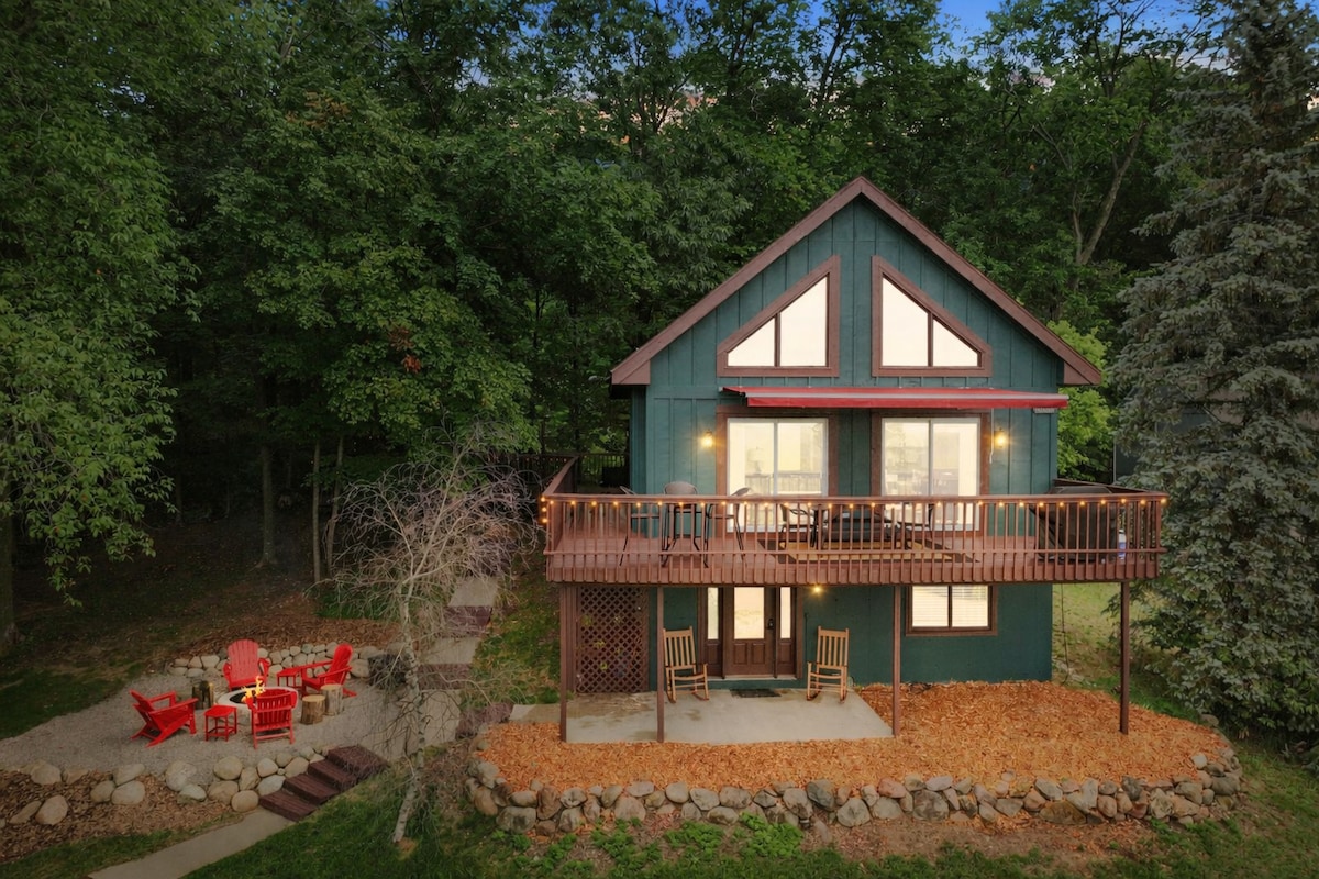 Torch Lake 小木屋,4 卧,可容纳 10 人,配备火炉和空调