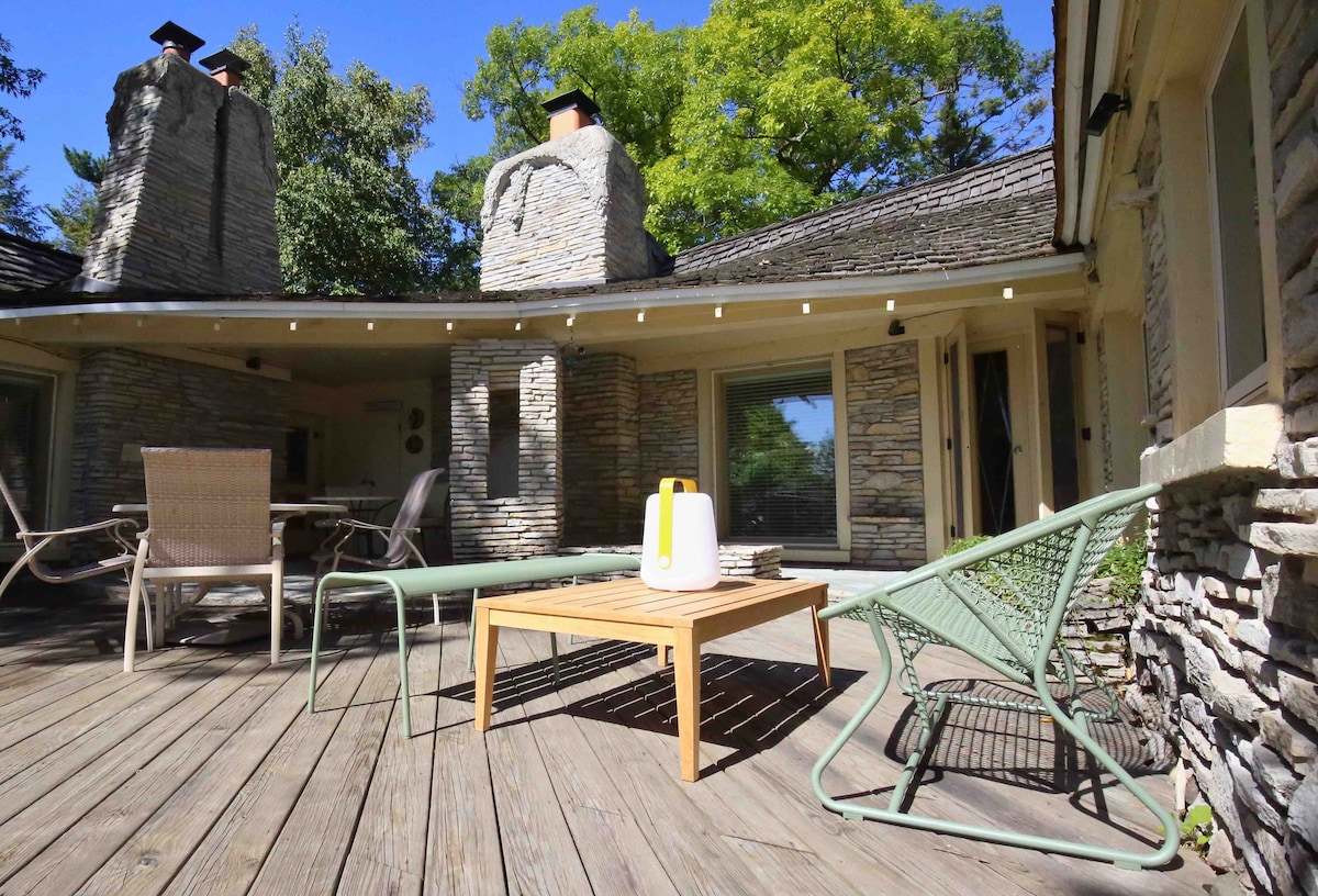 Country living w/ modern comforts. Perfectly situated for skiing and culinary adventures or luxuriating at home with complimentary up north wine, down comforters, flannel sheets, fully stocked kitchen, staples, linens, CDs, books, games & toys. Walls of windows. WIFI, 50" smart TV, & TVs in each room. Fire pit & wood. Centrally located for downhill & cross-country skiing, quintessential up north villages & cities, nearby water park, Short's Brewery. Walk to town. Up to 2 dogs $15/day each.