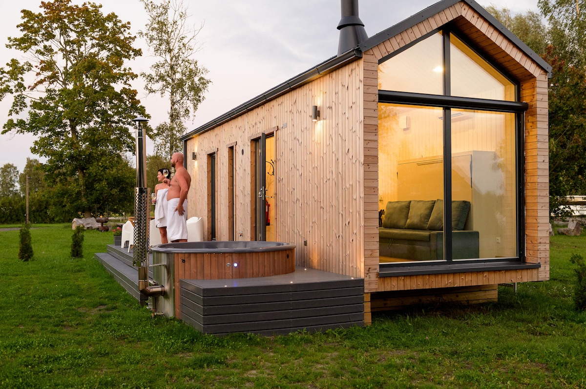 In this lovely and cozy one-room house you will have everything you need for a perfect stay in the summer-capital of Estonia: - private house with a terrace, sauna and hot tub, - green yard, - great location (city centre 1,3km, main beach 2,3km, shopping centres near by etc) Public transportation and Bolt scooters support smooth transportation to best places and events :).