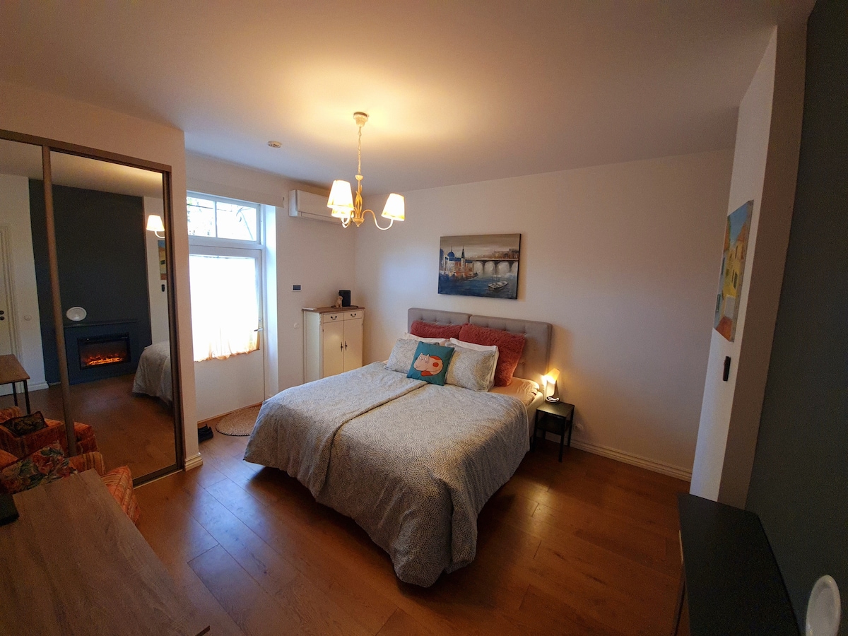 🌞Welcome🌞 to my cozy place near beach with a terrace, air conditioning and free Wi-Fi! My cozy escape features fireplace and is just minutes from popular attractions. Here’s what I offer: 💕Fully equipped kitchen 💕TV with 60 channels 💕Plush bedding for good night's sleep 💕Air Conditioner for refreshing stay Check-in: 18:00 🌞Check-out: 13:00 – perfect for late risers who enjoy leisurely mornings!🌞 Welcome👋