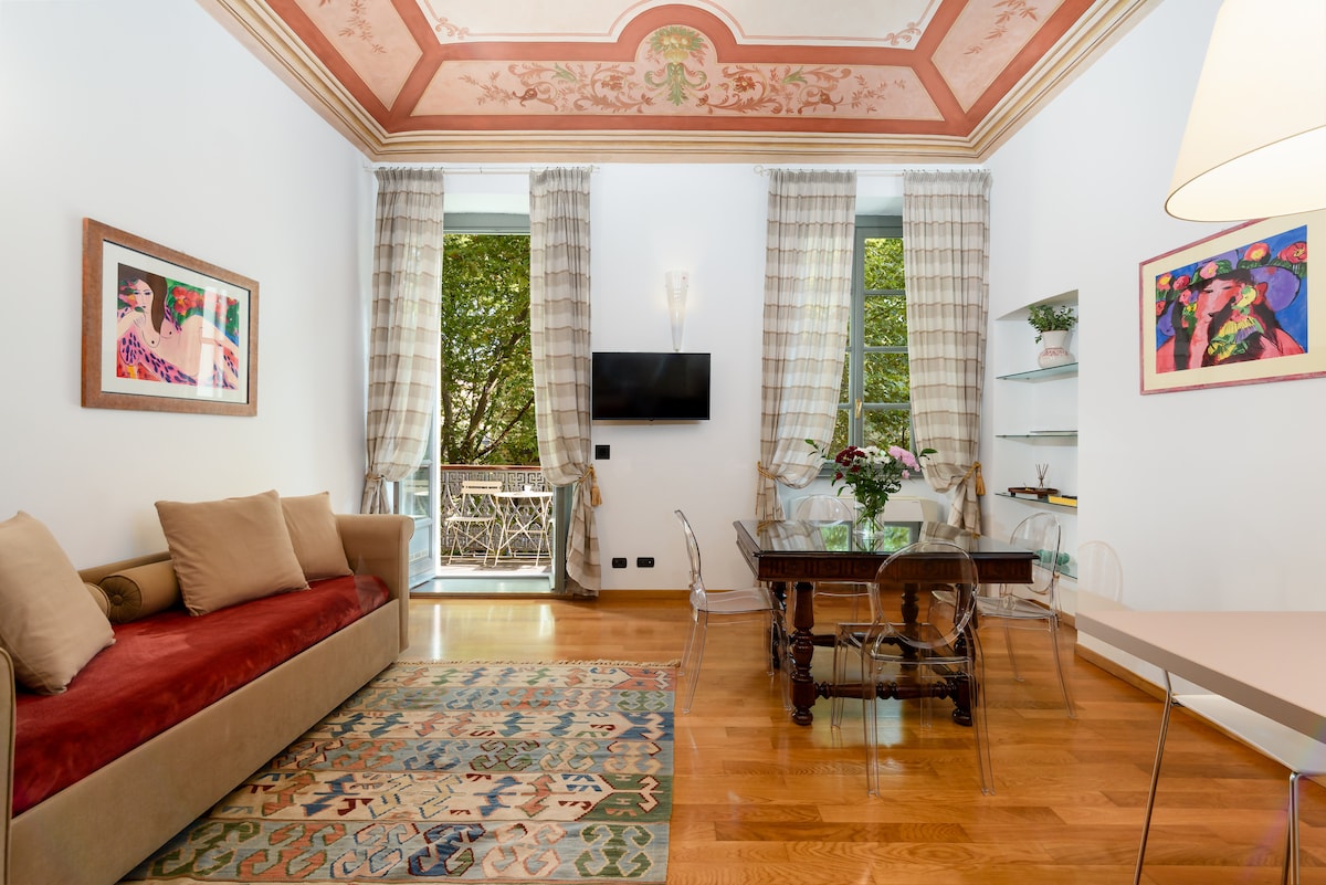 Re Umberto Suite is an elegant studio apartment in the heart of Turin. The studio harmoniously integrates all modern comforts (air conditioning, wifi with super fast fiber, etc.) with the atmosphere of the Turin aristocratic tradition. It will transport you into another era! Until 1700, Re Umberto Suite was the living room of a noble villa that over the centuries has turned into an elegant period condominium. New triple glazed windows have been fitted since May 2025!