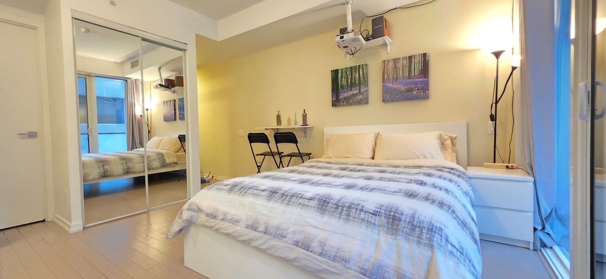 Located in the heart of Toronto’s Entertainment District, this modern and spacious condo is the perfect blend of comfort, convenience, and affordability. Ideal for business travelers, couples, sports fans, and tourists. Within walking distance of famous attractions such as CN Tower, Rogers Centre, and Ripley’s Aquarium of Canada, as well as a variety of local restaurants, bars, cafes, and shops. Safe neighborhood with security-staffed entrance.