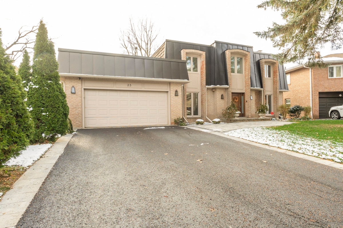 Experience cottage-style living in this renovated, furnished, and spacious (~1000 sqft) suite on the lower level of a 3-story home (walkout basement) on a ravine lot in a private cul-de-sac. -Separate entrance -Two bedrooms: Queen+double -Fully equipped kitchen, complimentary coffee/tea/snack -Free parking in the driveway -65-inch TV with Netflix -Private washer/dryer -Fresh linens, towels, toiletries -Few steps to the park/riverbank, a 10-min walk to Yonge through the backyard pathway