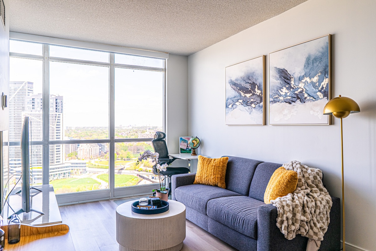 🌆 Skyline Serenity | Stunning Views + Prime Downtown Access Welcome to your stylish escape in the heart of Toronto! This modern suite offers breathtaking panoramic views of the city skyline, CN Tower, and waterfront — day or night. Whether you're here to explore, unwind, or work remotely, this spot blends luxury, comfort, and unbeatable convenience.