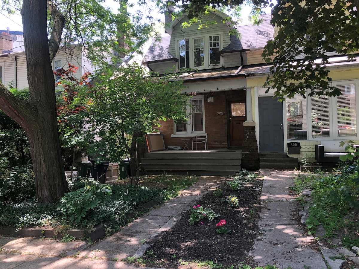 Family-friendly beaches neighborhood. Waverley Road, two walkable blocks to Kew Beach and Queen street with good shopping, pubs and restaurants. Kid and parent-friendly laneway in back. Great backyard deck. Two-car parking. House is 100 years old and shows some wear but otherwise clean, warm and charming. We currently have room Air conditioners in Bedroom 1 and 4 (also ceiling fans Bdrm 1-4 works for most weather). Bedroom 5 is in the basement and always cool. Easy access by Go Train to FIFA.