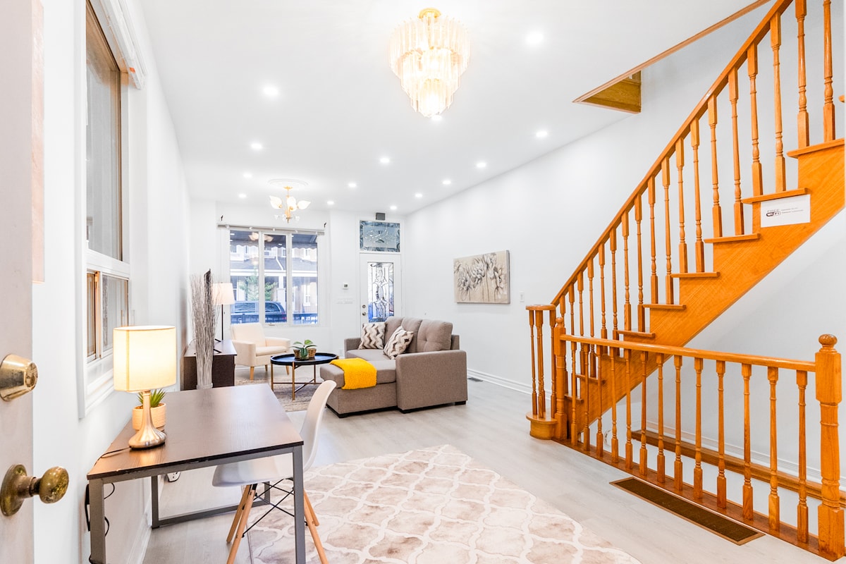 This unique place has a style all its own. Beautifully decorated and conveniently located in the heart of Toronto in a Liberty Village behind a CNE, 17 min walk to BMO Field and 30 min to CN Tower, Rogers Centre and Lake Shore. Chef’s kitchen is equipped with all kind of utensils. This home has a terrace on the 3rd floor with patio furniture to enjoy the lovely weather with a glass of wine! Our space is perfect for family, couples or solo travelers looking to indulge in the city of Toronto.
