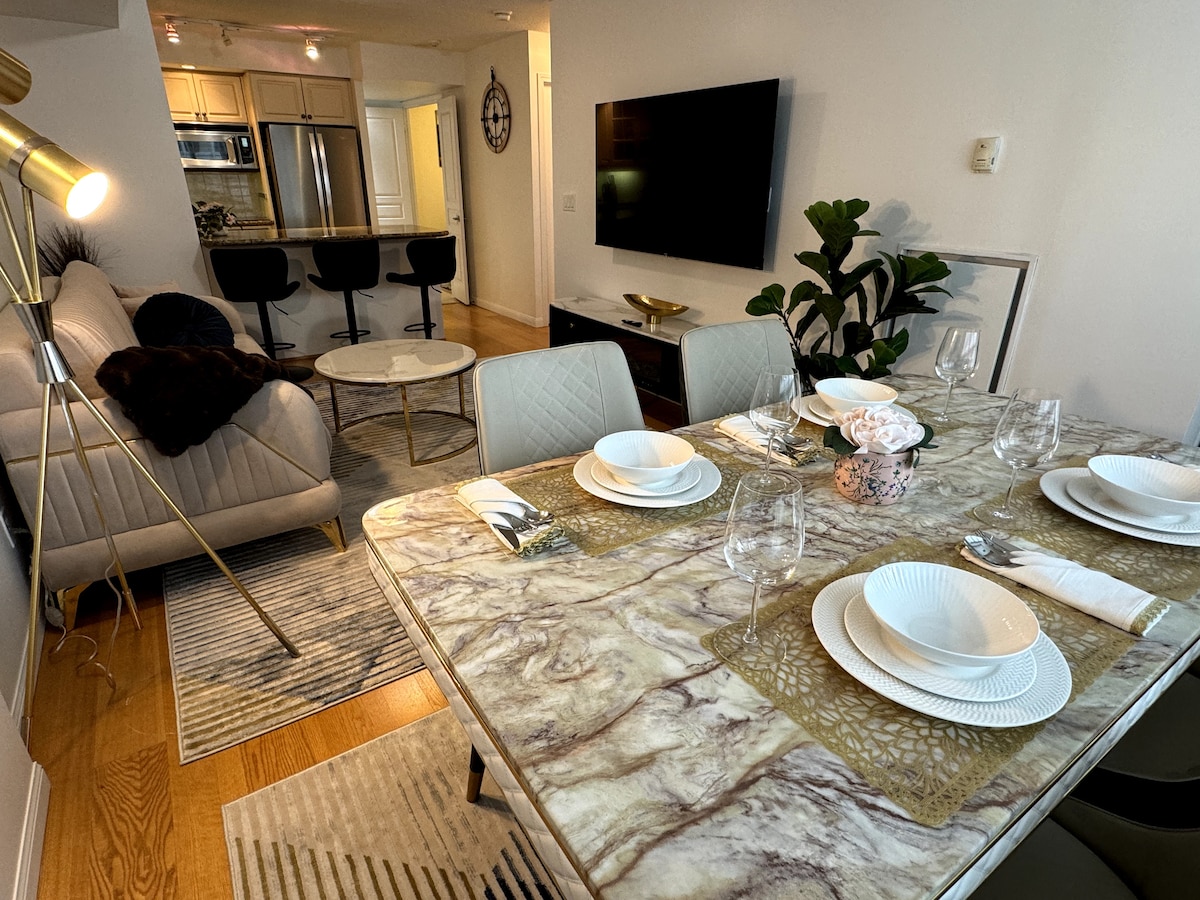 Welcome to your stylish 1 bedroom, 1 bathroom condo with 1 free parking space and only a 10 minute walk from the CN Tower, and right in the heart of Toronto! Enjoy the full indoor gym and sauna and the outdoor jacuzzi. A GoodLife fitness, LCBO and Scotiabank Theatre is just 5 minute walk! Cafes, restaurants, and entertainment surround the area. The unit includes fast Wi-Fi, Netflix, full kitchen, and in-suite laundry - perfect for work trips, weekend getaways, or extended stays.