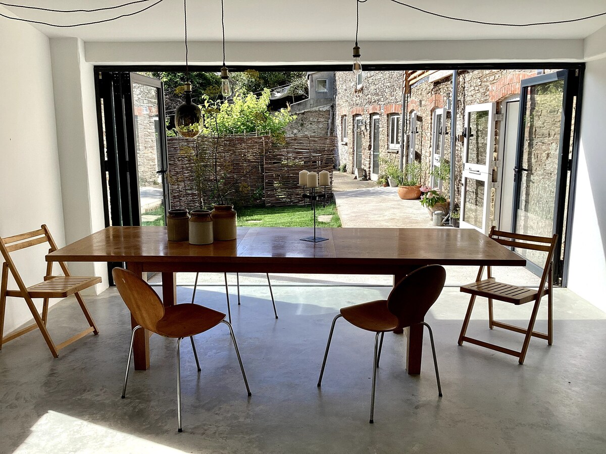 Separate entrance to your spacious ensuite room with deep roll-top bath, toilet and bidet in 17th century character cottage. Unsuitable for limited mobility persons Beautiful garden. Buffet breakfast included Ecover cleaning products. Quality bedlinen and towels. Ample private parking. 5 minute stroll over the River Dart to town centre for many cafes,pubs and indie shops. 15 minute walk to station Riverside walks Wild swimming English Heritage Castle Retro Cinema See Polly's Guidebook