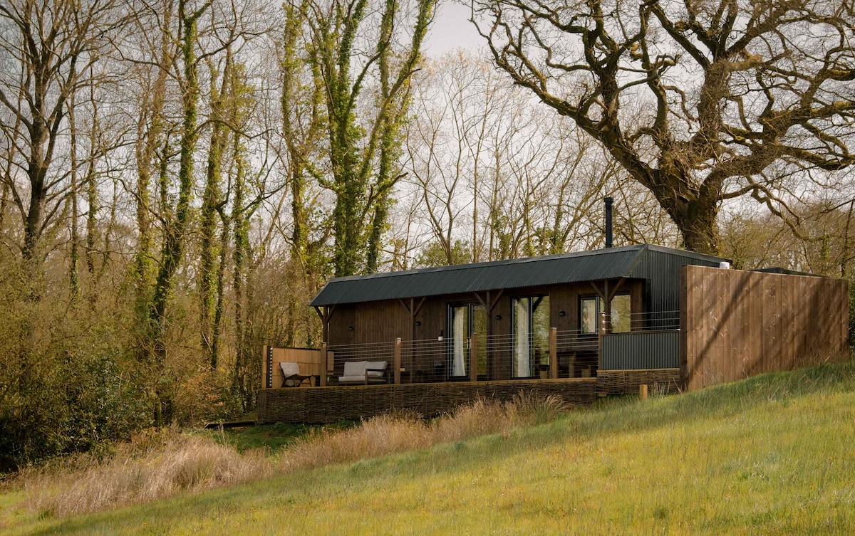 Lofty's - bespoke & fabulous! Skillfully hand crafted, delightfully cosy, with all the trappings of quirkiness & good design. Super-fast Wifi. Wood burner. Both bedrooms boast ensuites, each with a roll top bath & walk in shower; perfect for 2 couples. *If booked by just one couple, the 2nd bedroom will be closed Private patio. Outdoor dining. Covered hot tub shack with soft seating & firepit. 50 acres of private land Over 12 years & adults only