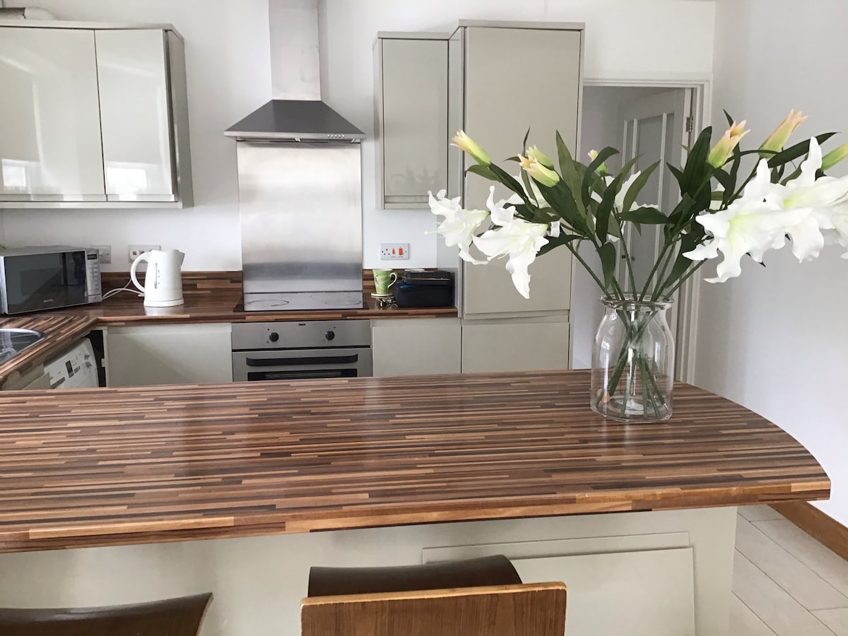 Purpose built bungalow/annexe in the back garden that can be shared. Own entrance and patio outside with level access. Shared garden with a lock on the gate so safe for children. Newly built property that allows you to have privacy with all your home comforts provided. There is free shared parking at property and surrounding streets. We are 1.5 miles from the beach, 1 mile from train station with a bus stop 2 minute walk away. We are near to the Exe trail. Exeter city is 8 miles away.