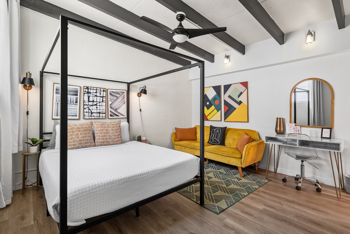 Enjoy the elegant design of our studio space located in the heart of LB. Featuring a cozy, queen sized bed, a lovely kitchenette with complimentary coffee and tea, a full bathroom, and rosewood furniture that offers a relaxing and warm experience. Our unit is walking distance to the best restaurants, attractions, such as the shoreline village, the aquarium, the historic Pine Avenue, and the Convention Center. It is also near the metro and ocean front, perfect for guests traveling without a car.