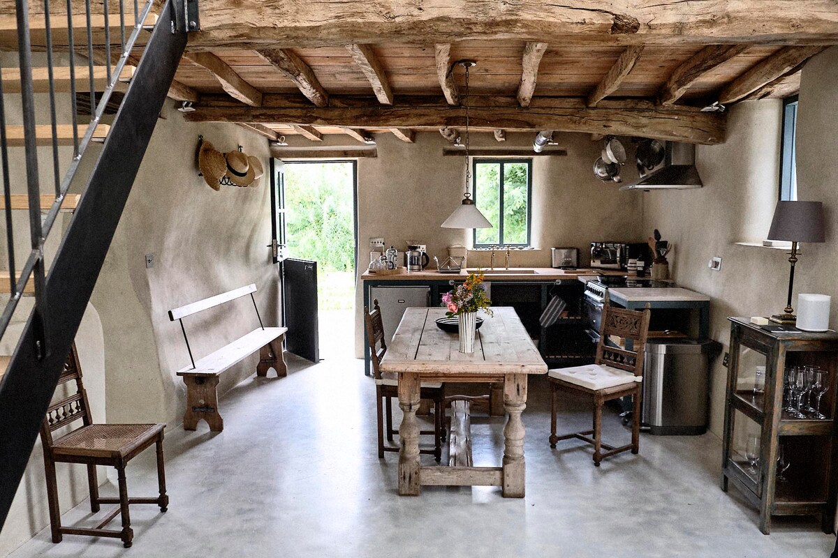 A calm, deeply luxurious space to recharge & reconnect. The Shippon is a meticulously converted cow barn with heated, polished concrete floors, gently curving deep green walls, hand-built kitchen, warmly lit reading nooks, & natural materials. Woollen blankets, feather sofa, antique Scandinavian log burner, king-size bed with French linen & down, waterfall shower, & the softest towels. Our sleepy Devon hamlet is only lit by stars at night. You might just sleep better than you have in years.