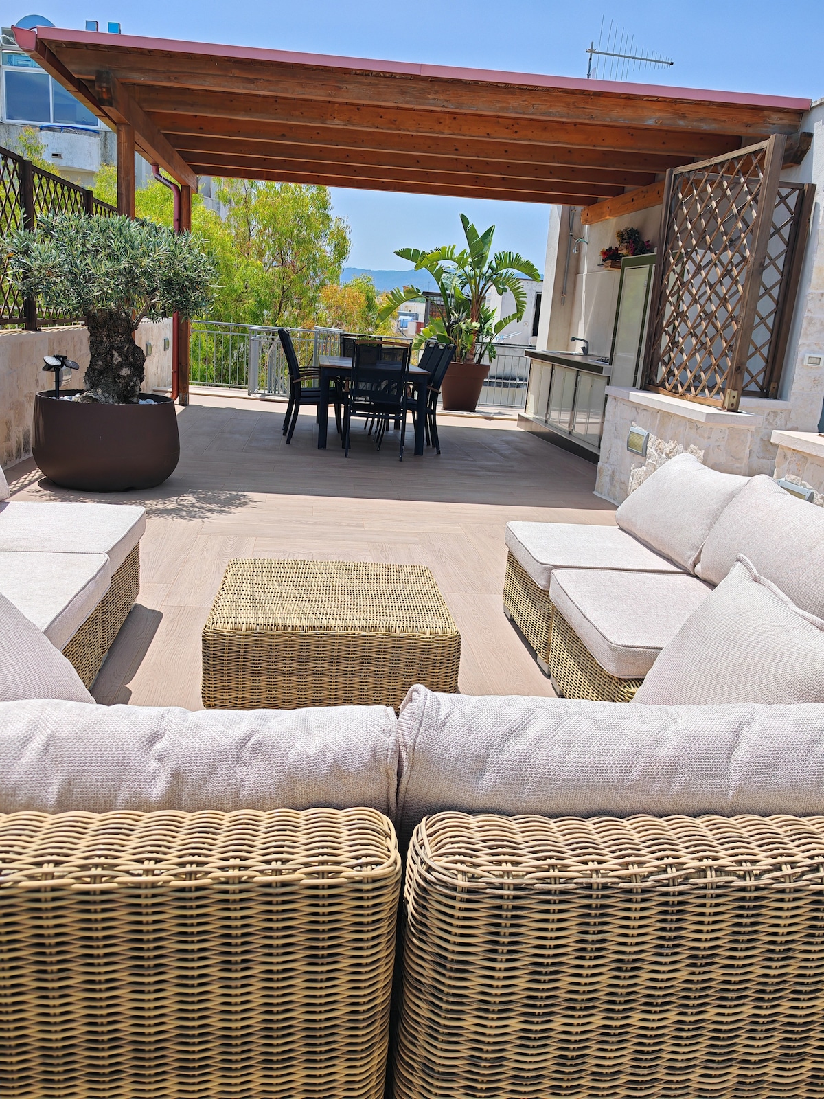 Holiday house in Puglia "Lamia di Paola". Discover our villa with swimming pool near the sea. Our house is composed of : - 4 bedrooms - 3 bathrooms - 1 kitchen - 1 interior relaxation area - 1 veranda with a sliding door that offers a magnificent view of the garden - 1 dining room - 1 magnificent terrace and swimming pool - 1 rooftop Would you like to book your moment of escape in Puglia? La Lamia di Paola is a holiday home renovated in 2019 and 2022 with swimming pool.