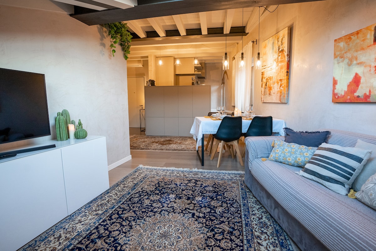 Attic in the Historic City Center – Steps from Verona Arena. Stay in the heart of Verona’s historic center, close to the main cultural attractions. This two-level apartment features a spacious master bedroom with a king-size bed and high-quality topper, along with a stylish bathroom with luxury toiletries.Upstairs, enjoy a bright open-space area with a fully equipped kitchen and elegant lounge.