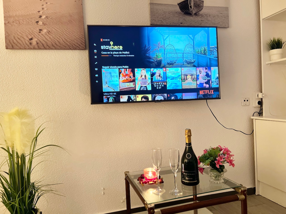 Welcome to our bright and cosy studio! Excellent location: 200 metres from Los Locas beach and 400 metres from Del Cura beach, promenade with cafes, restaurants, pubs. Bus service, infrastructure - all at your fingertips! The studio is equipped with everything you need for a comfortable stay: electric cooker, boiler, hairdryer, crockery, kitchen utensils, washing machine, TV SMART, WI-FI, kettle, microwave, iron, ironing board, linen. Smoking cigarettes only on the balcony.