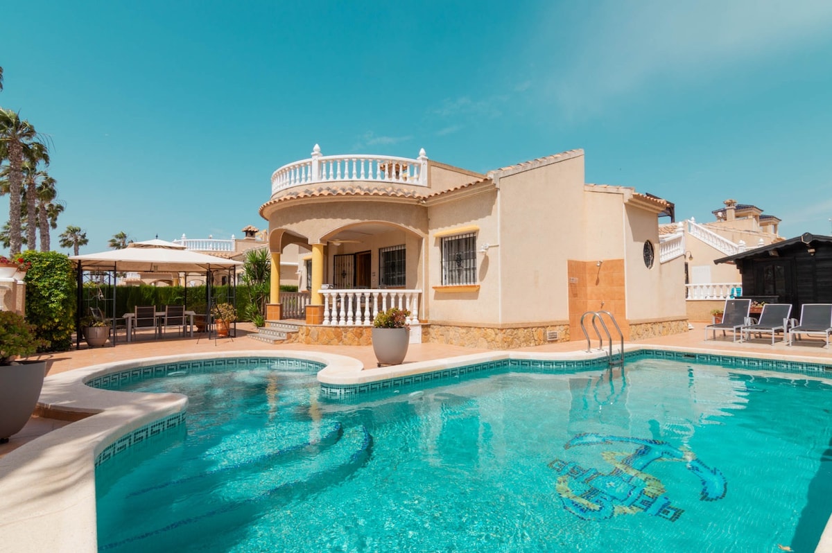 This Villa is located very close to Ciudad Quesada centre, at the south of the province of Alicante. It has 3 bedrooms and 2 bathrooms, with availability for 6 adults. If necessary we can provide a cot, chair and a bathtub for children younger than 3 years old. It has a magnificent private pool, and It is treated all the year to be ready for the people who come to our property, Wi-Fi unlimited and NETFLIX free service, and parking place inside the plot.
