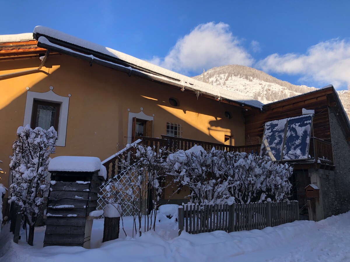 House in a splendid position in the Alps for nature lovers. Renovated and recently expanded with the studio apartment where you will be staying. Modern but in the typical mountain style. Humble in size but independent and equipped with all the amenities you need, incl. private kitchen and bathroom. Comfortable sofa bed for two. The town Villar Pellice is three kilometres away. The road to the valley is all paved but has some hairpin bends.