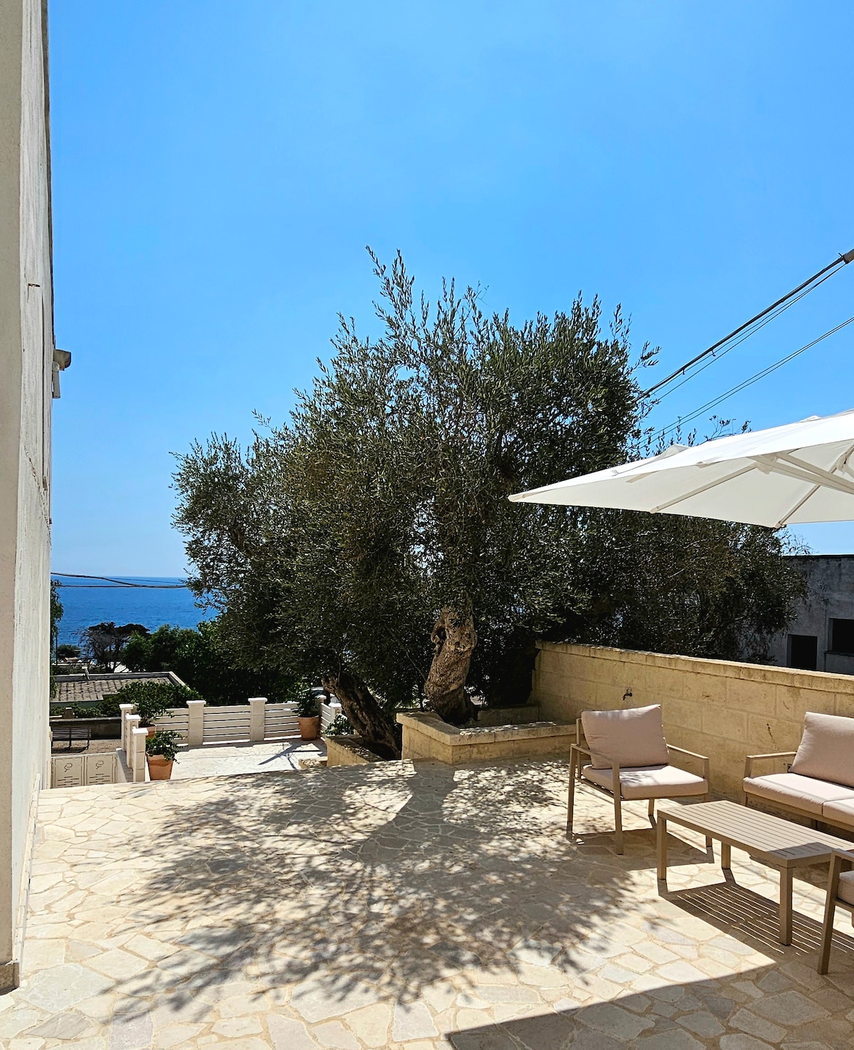 Recently renovated seafront apartment with breathtaking sea views and romantic sunsets. Located between two charming coastal villages linked by a beautiful seaside walk, in one of the most sought-after areas of Salento. Cafés, restaurants, beach, local market, and a pharmacy are all within short walking distance. A scenic coastal road runs between the house and the sea, offering easy access to the waterfront. Perfect for guests who want to explore Salento while waking up to a sea view.