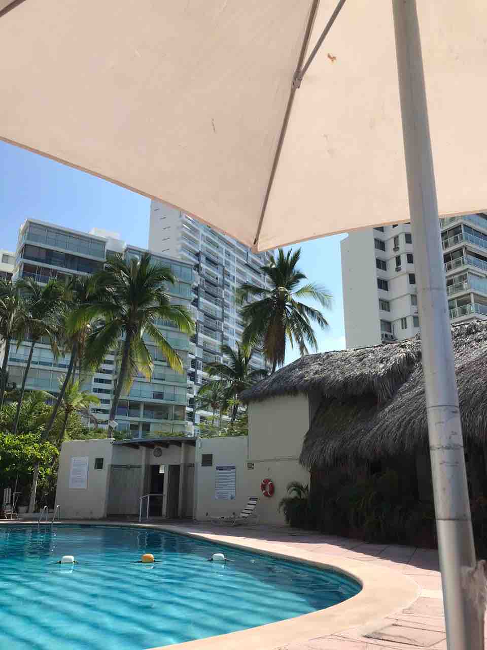 Departamento ideal para pasar fin de semana. 2 habitaciones 2 baños. cocineta. Vista al mar. En áreas comunes esta el acceso a playa, estacionamiento, cancha de tenis, jacuzzi, albercas y (cardio) gym. Si gusta de las actividades al aire libre cuenta con cancha de tenis y un área completamente segura de 4 km para correr o salir a caminar. Restaurante junto a la alberca con horario de 8am a 8pm