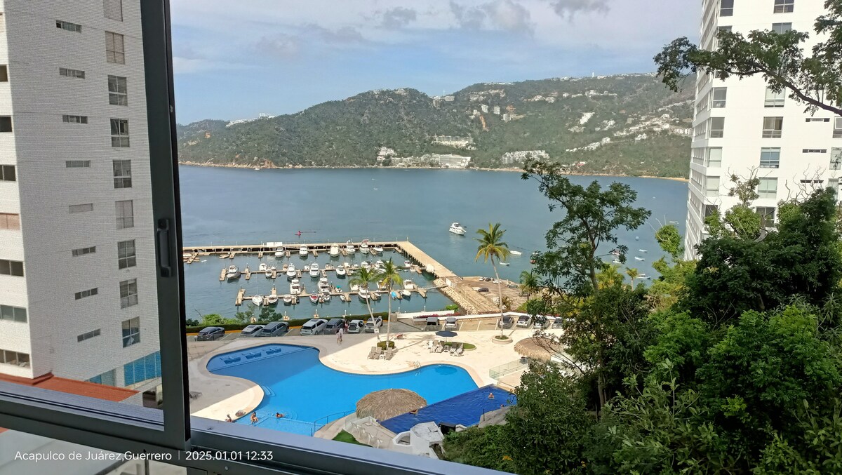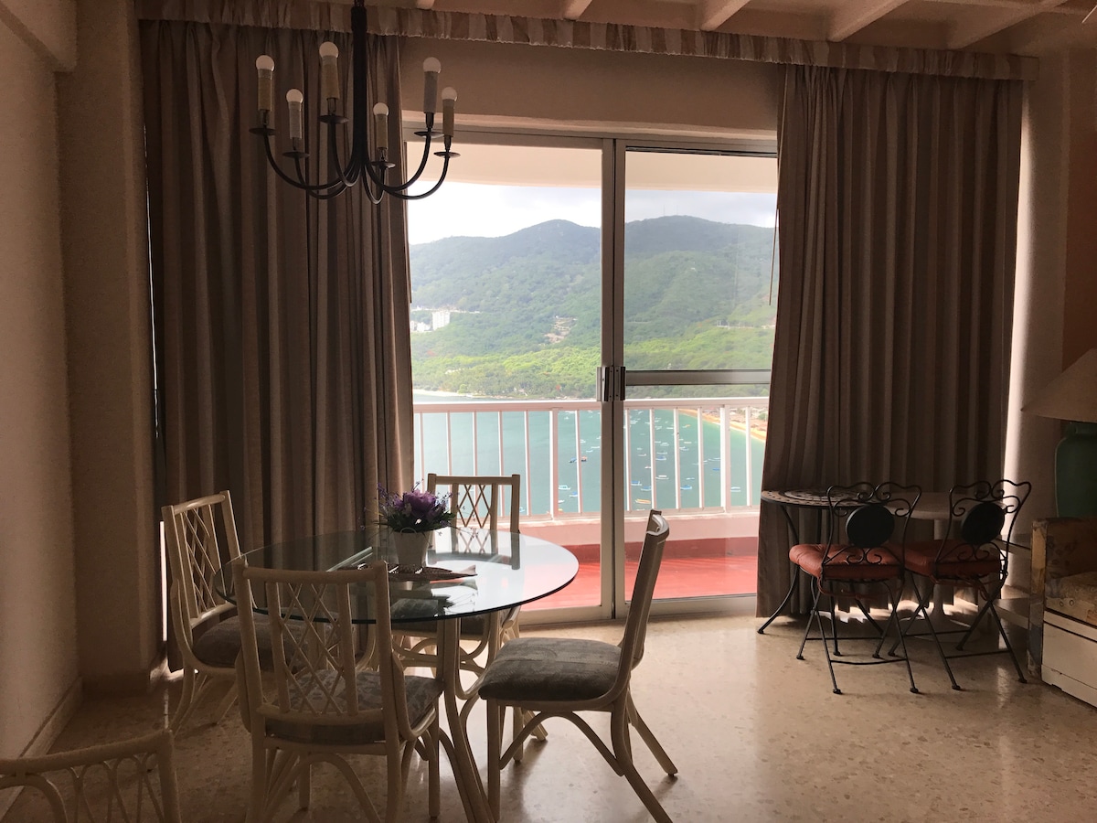 Increíble vista a bahía Puerto Marqués, 2 albercas, 2 jacuzzis, gym, SPA, cancha de tenis, zona de juegos, restaurante, estacionamientos, seguridad (dos plumas más seguridad en la torre) acceso a playa Majahua. Acceso exclusivo por Punta Diamante cerca del Hotel Banyan Tree. Depa remodelado, moderno, fresco, con aire acondicionado. 2 TV, 2 baños, 1 cuarto, sala comedor con camas - sofas extras, balcón. En el registro se dan brazaletes con un costo de 60 pesos por persona y se pagan al condo.
