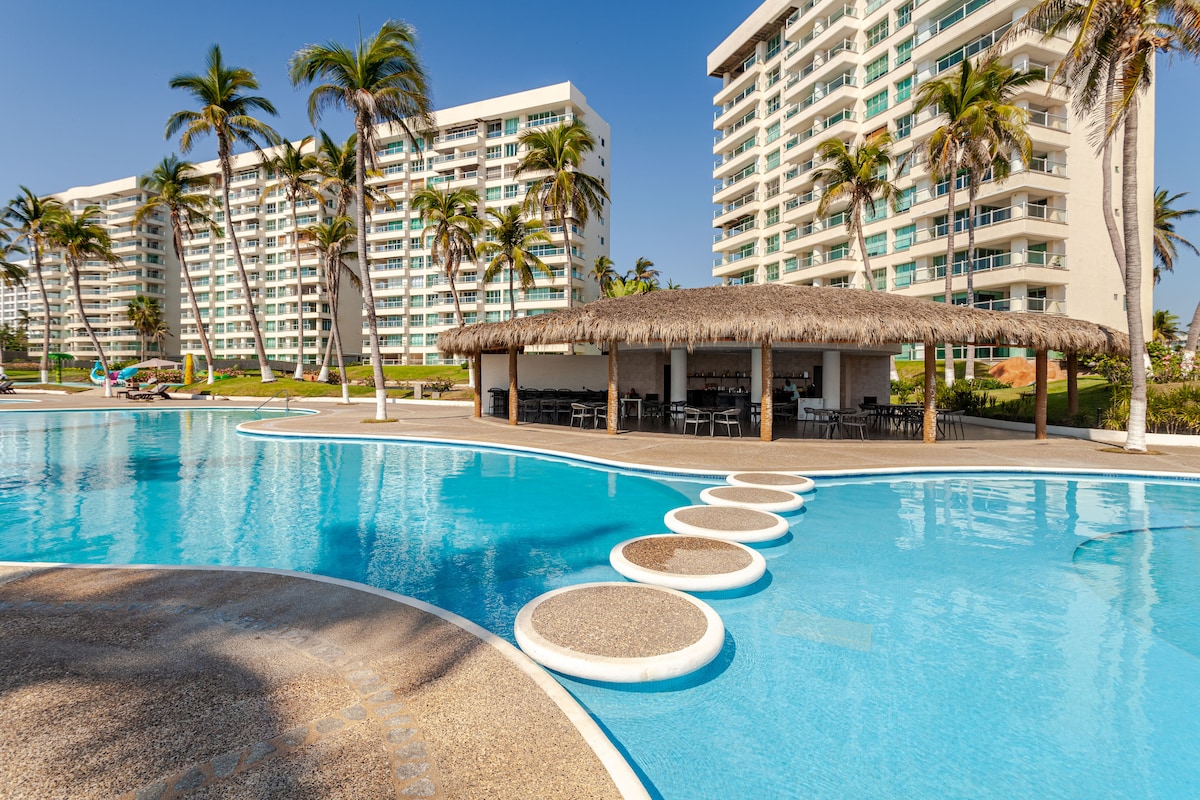 espacio limpio y equipado con lo necesario para poder pasar unos dias increibles en acapulco diamante. albercas y restaurante en el condominio. balcon con vista a la nueva marina de acapulco. cerca de la isla, aeropuerto y central de camiones diamante es importante mencionar de después de Otis algunos de los servicios del condominio no están habilitados, antes de reservar con mucho gusto podemos platicar sobre el status del condominio