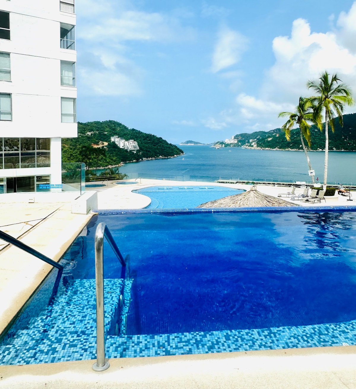 Departamento de 60m2, con una vista increíble a la Bahía de Puerto Marqués. Ideal para parejas que buscan una escapada romántica o familias pequeñas que quieren pasar una estancia tranquila y divertida. El condominio cuenta con una hermosa alberca y dos jacuzzi a tu disposición. Es ideal para que pases un fin de semana o unas vacaciones increíbles. El departamento está remodelado y totalmente equipado, por lo que tu comodidad está garantizada.
