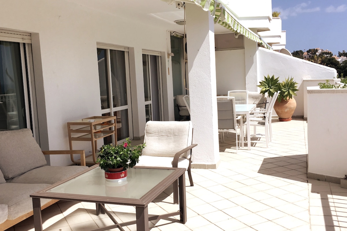 Lovely apartment in tranquil environment located up the hill in Torreblanca, Fuengirola. Cozy and bright holiday home with modern kitchen and panoramic views from the terrace. Fast Wi-fi, Bbq, communal pool and private parking. Great base for peaceful holiday, yet only 5 minutes drive down to the town centre, beach, promenade and all amenities <br>Cozy living room lead onto great terrace with panoramic views to the sea and mountains where you can enjoy al-fresco meals. The car is essential.
