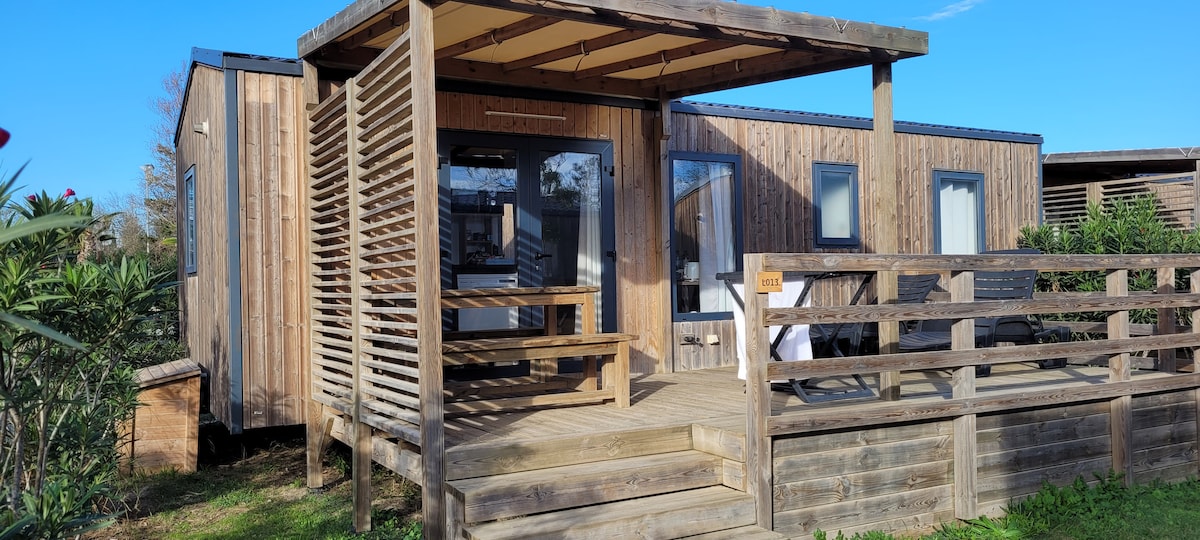 Petite maison de 28m2située à 200m de la mer, dans le 66 et non en Camargue résidence sécurisée avec climatisation, une place de parking privé, Le logement dispose d'une chambre séparée ainsi que d'une mezzanine avec un canapé lit La terrasse privative vous permettra de vous ressourcer au soleil A coté de l'Espagne(45min) Collioure(30min) Perpignan(15min) Le logement vient d'être entièrement refait à neuf afin de pouvoir vous accueillir dans les meilleurs conditions Les animaux sous réserve
