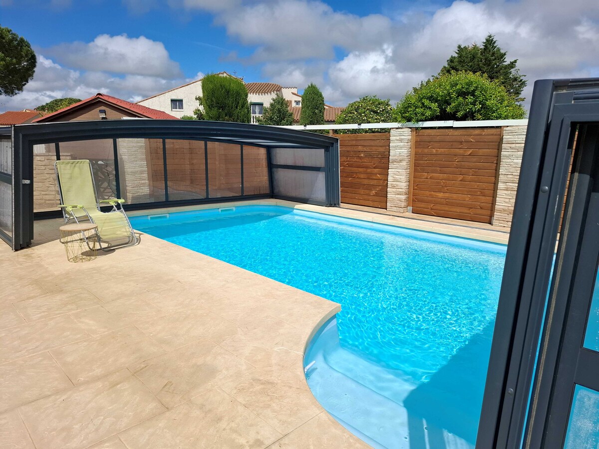 Situé au cœur du Village des sables, résidence sécurisée à Torreilles Plage dans un cadre unique et protégé classé Natura 2000. Accès direct à la plage située à 200m. Villa de charme à l'architecture atypique entièrement rénovée Elle dispose d'un agréable jardin clos végétalisé avec terrasse bois coin détente et terrasse bois coin repas ombragé disposant d'une plancha électrique Les richesses de l'arrière Pays Catalan, de la côte vermeille (Collioure, Banyuls) offrent d'innombrables escapades .