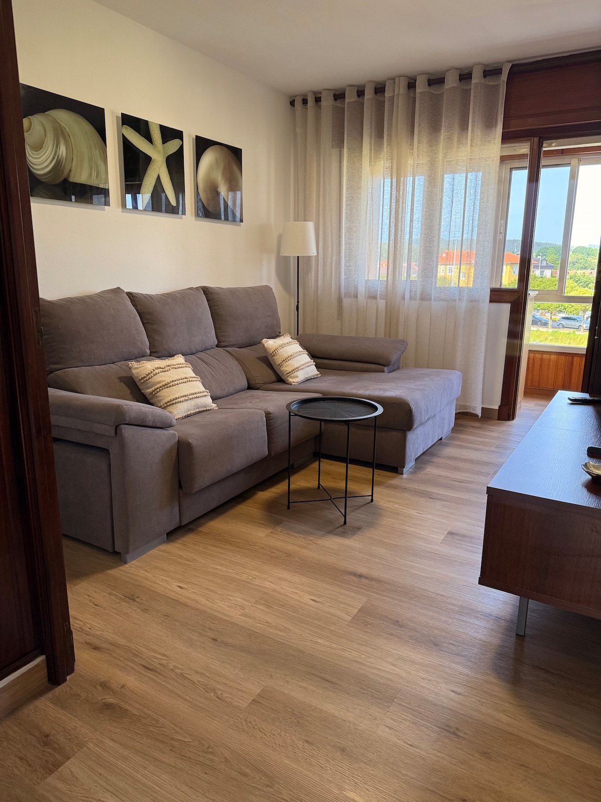 Apartamento en primer piso, con preciosas vista al Parque natural de las Dunas de Liencres y ría de Mogro. Dispone de una habitación con cama de matrimonio y salón con sofá italiano convertible en cama de 1.35m y cama supletoria de 90. Cocina completamente equipada. Se encuentra a 70m de la playa (2' caminando). A 15 minutos de Santander y Torrelavega. Fácil aparcamiento gratuito.