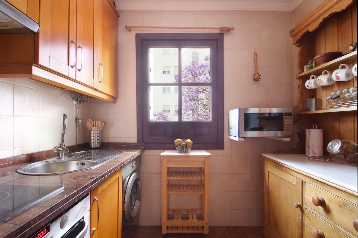 Cosy , brigh,t quiet and pretty spacious apartment to get the most of your money in La Nogalera. Panoramic views, near the lift to the beach, 100 meters from Calle San Miguel, next to the train station. WIFI, TV ,,fully equipped kitchen, two bathrooms, all the amenities and appliances, just steps from taxi stop, bus, supermarkets, shops and restaurants. Experience living in the heart of the city