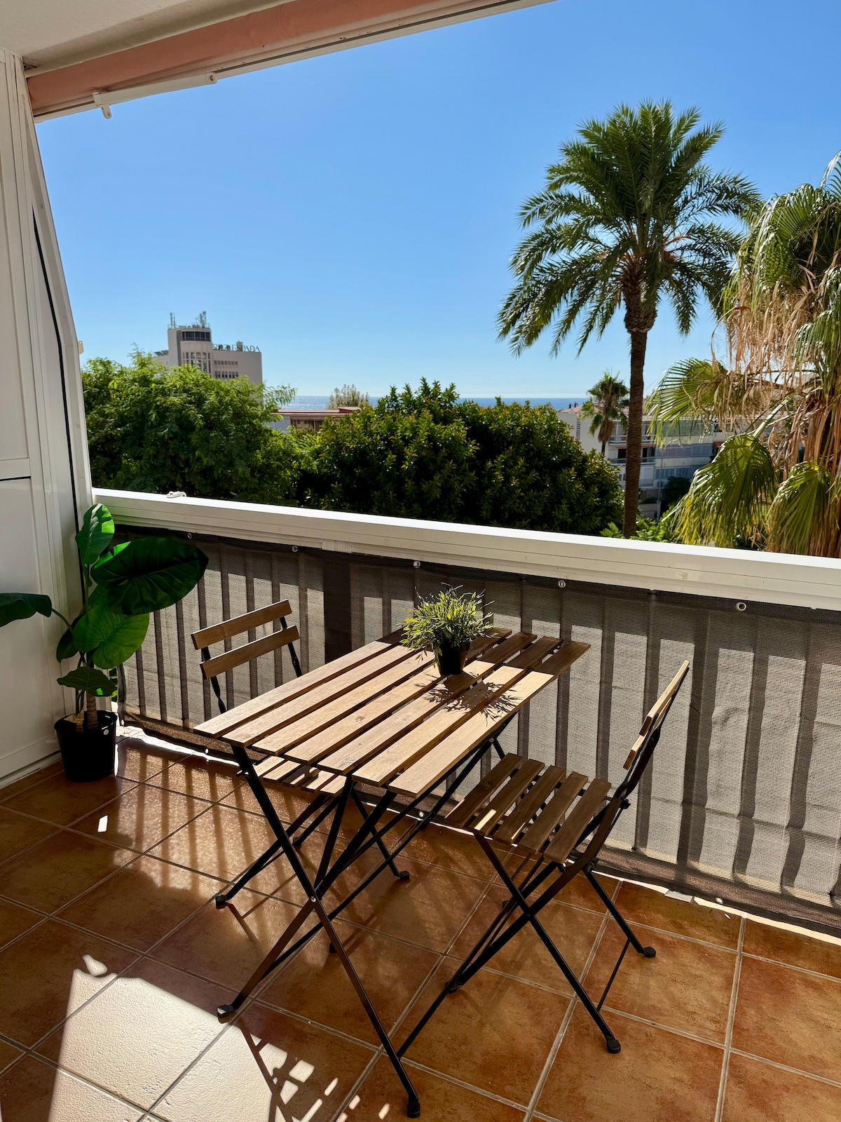 Spacious duplex with AMAZING SEA VIEWS, 100% refurbished with everything brand new. 2 bedrooms, one of them with King Size bed , 1 bathroom & a big living room with open kitchen. Nice terrace with espectacular views. 12 minutes away by walk from Carihuela Beach (3 min by car) and 15 minutes away from Málaga city. Excellent train connections with Malaga Airport and AVE Station (stop: Montemar Alto). Quiet area with nice gardens and swimming pool.