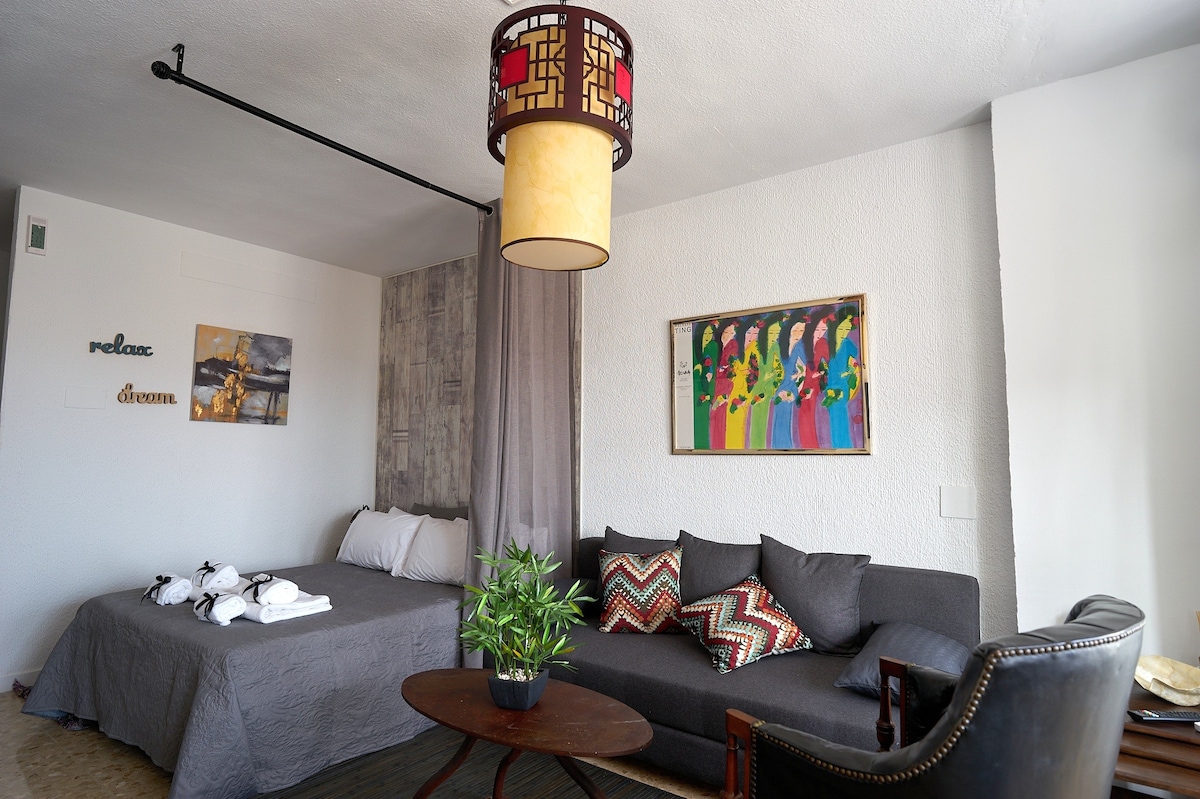 Gorgeous romantic studio elegant and functional with everything you might need for your relaxing and enjoyable vacation. Refurbished studio, in the center of Torremolinos, located on the quiet street. Ideal for couples. Sunny, modern design, ideally clean and cosy. Studio flat with doble bed (150cm) and sofa bed (140cm), bathroom, small kitchen, washing machine, wardrobe, TV, WiFi. 3st Floor with sea view. Public transport by hand.