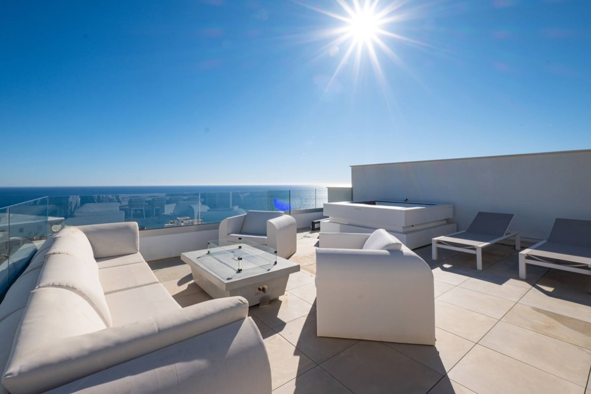 This stylish & luxurious apartment is perfect for a group of friends or family who want to enjoy an unforgettable holiday in Costa del Sol. The apartment offers everything you need and more. Enjoy spectacular sunsets while being entertained by its outdoor fire pit. This 3 bedroom apartment has ocean & mountain views and is located at the exclusive area of Higueron West and has many communal pools. It is about 1.5Km away from the beach of Carvajal where you'll find several restaurants and shops.