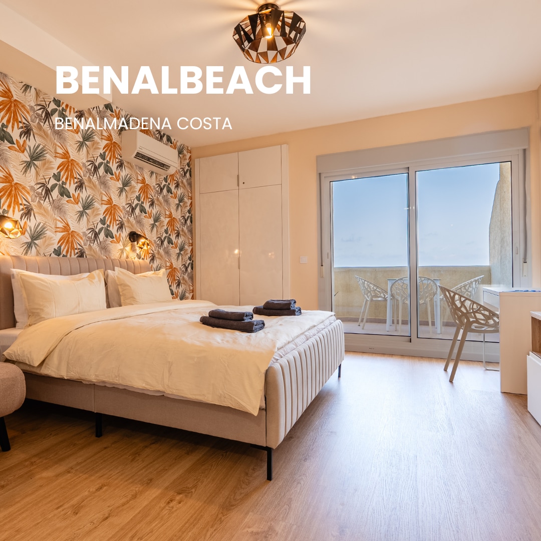 Beachside Luxury 1 Bedroom suite that can accommodate up to 4 people. Has been fully refurbished in April 2020. It's located on the fifth floor in the renowned BenalBeach apartment complex. It has a private bedroom with terrace, a living room with a queen sleeper sofa bed and a big terrace with jacuzzi. The property has 5 amazing outdoor pools. Room amenities include Free Wifi, 2 TVs, 2 air conditionings, Hair Dryer/Ironing Board... It's a Smoke-free property.