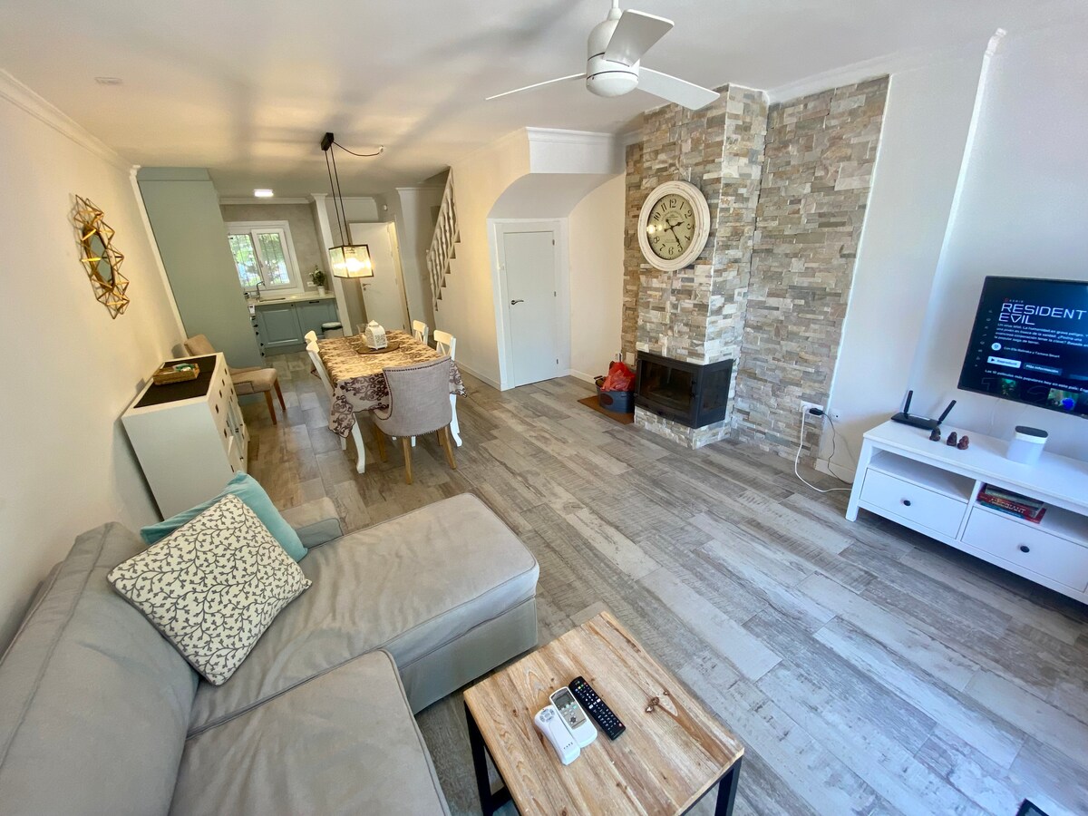Modern townhouse with magnificent interior design and rustic touch, dotted with beautiful details. Sunny, with easy access and quiet area, fireplace, parking, games room, mini pool, gym, Wi-Fi, smart TV, air conditioning, located 15 minutes from the center of Malaga, beaches and airport, direct entrance to the Technology Park. Ideal for couples, families or workers, but not for party or farewells, there is a limitation due to noise. Their spaces are private. We speak Spanish/Inglish :-))