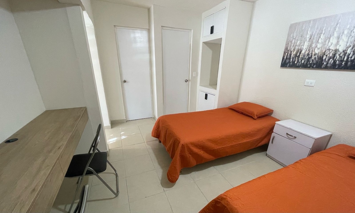 Alojamiento para grupos chicos y grandes en Torreón Coahuila. 💡Ideal para estancias cortas, económicas y privadas. ✈️ A 5 min del aeropuerto 🚌A 5 min de la central de autobuses 🏥 A 10 min del IMSS/71 ✅ A 20 min del centro de Torreón. 🚿Baño completo cada apto. ❄️ Aire frío ✅WIFI 📺TV ✅Mini refrigerador 🧺Lavadora ✅Mismo acceso, 5 departamentos independientes con entrada por escalera. 📍Ubicado sobre Av Bravo Oriente