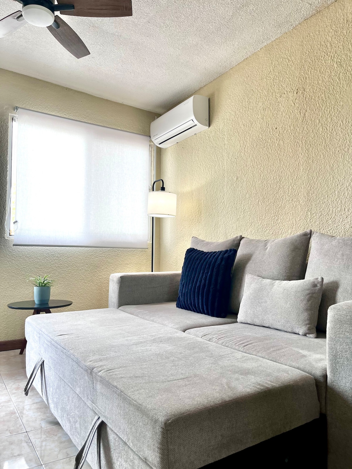⚠️ Nuestro Airbnb es un Departamento PRIVADO con UNA RECÁMARA con MiniSplit para UNA PAREJA cuenta con: -Cine en habitación y Alexa con Spotify Premium -TV 55' en sala con Chromecast y PS4 🎮 -🎬 HBO Max, Disney+, ClaroVideo, por nuestra cuenta. -Estacionamiento un cajón exclusivo NO TECHADO 🏁 -NO FACTURAMOS -Aeropuerto a 5 min | Central de Autobuses a 5 min -Hospitales a 7 min -Plazas Comerciales, GYM y Restaurantes 🍴 a 3 min -Oxxo y Farmacia en esquina