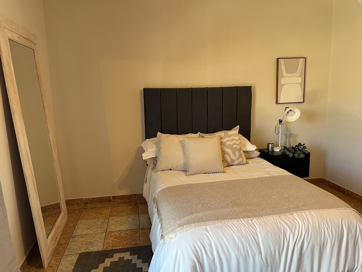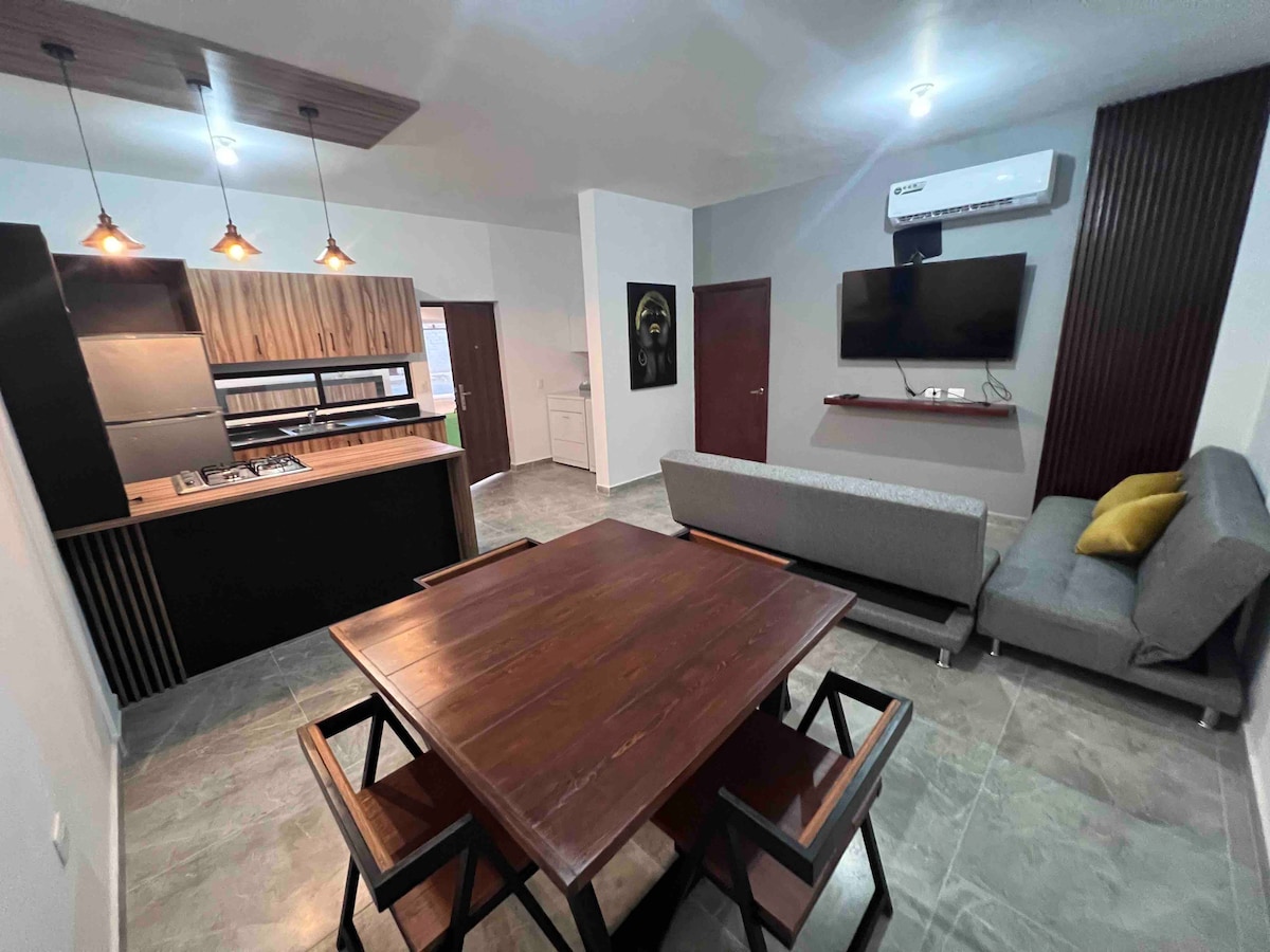 Relájate en este espacio tranquilo y elegante. Disfruta de un departamento totalmente equipado y NUEVO. Pantalla de 70” en el área social y de 55” en los cuartos. Amplios baños, clósets, lavandería, camas queen, minisplit’s en todas la áreas, cocina equipada, acceso a roof top con vista panorámica. Combinamos el buen gusto y modernidad con el comfort. Cerca de restaurantes y súper mercados. Disfruta tu estancia en nuestro departamento diseñado para satisfacer tus necesidades.