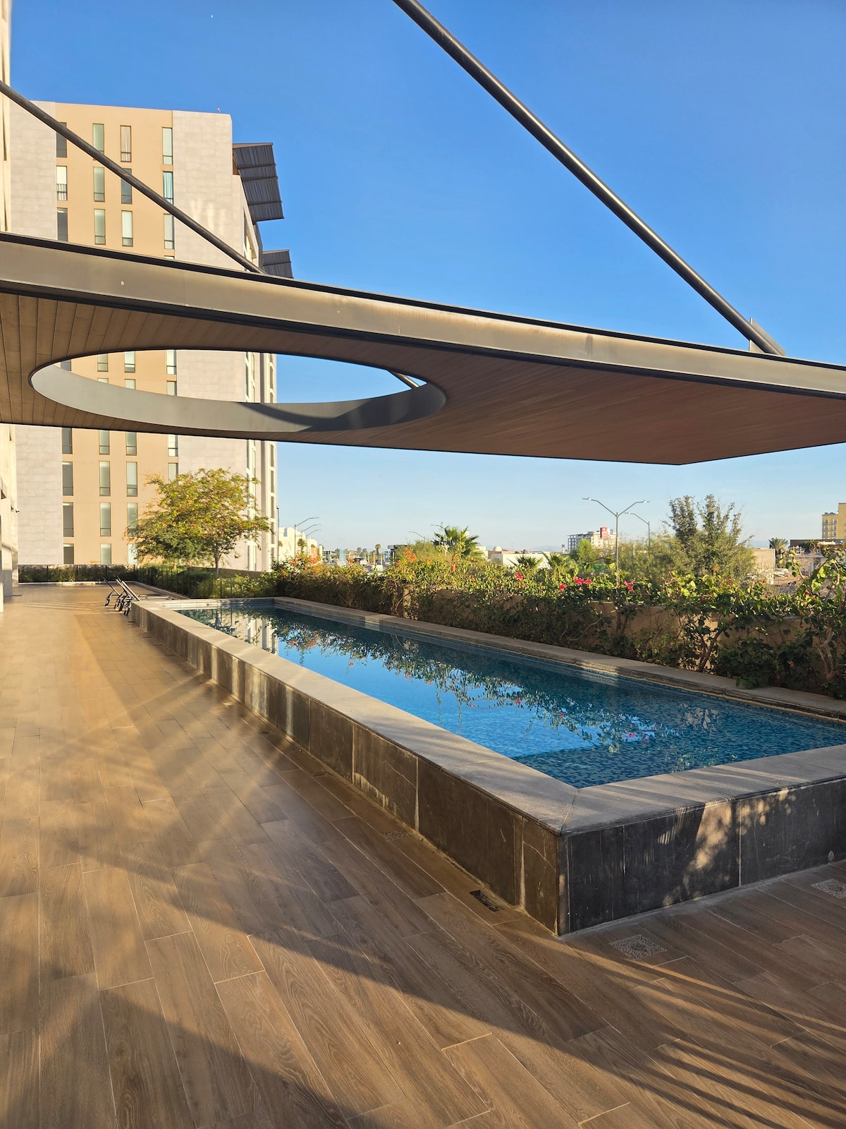 Sumérgete en la comodidad de nuestro exclusivo departamento de 2 recámaras y 2 baños. Camas king y queen size, wifi y 3 televisores. Disfruta la comodidad de confortable sala, cocina equipada con electrodomésticos, 3 Mini Split para un clima perfecto, centro de lavado y de 2 lugares de estacionamiento. En áreas comunes, acceso a bonita alberca, área de Coworking, entretenimiento asegurado con mesa de billar. Además, aprovecha la oportunidad de jugar pádel y vivir una experiencia inigualable.