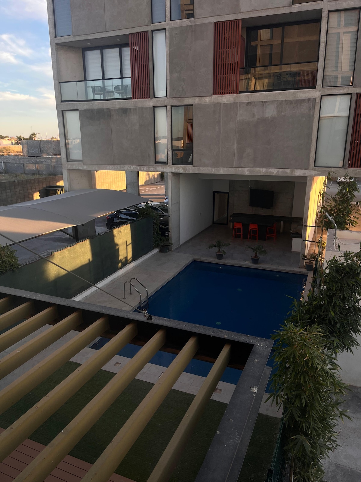 Ven y relájate a este increíble y exclusivo departamento. Contamos con todo lo necesario para que tengas una increíble estadía. Departamento de 1 recamara con cama Queen, 1 televisor, 1 baño, wifi, 2 Mini Splits y 1 lugar de estacionamiento. En áreas comunes contamos con acceso a una espaciosa alberca, área de Coworking, mesas de billar para tu entretenimiento. Ademas de contar con la opción de jugar pádel.