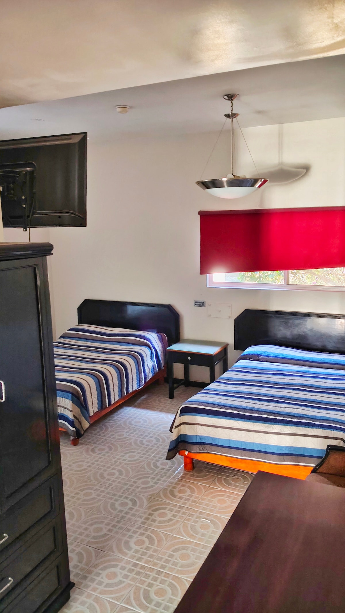 Habitación cómoda con 2 camas, ideal para parejas, amigos o viajes de trabajo. Espacio limpio y funcional con aire acondicionado y TV para una estancia agradable. Ubicada en el centro de Torreón, con fácil acceso a restaurantes y transporte. Perfecta para descansar y moverse fácilmente por la ciudad.