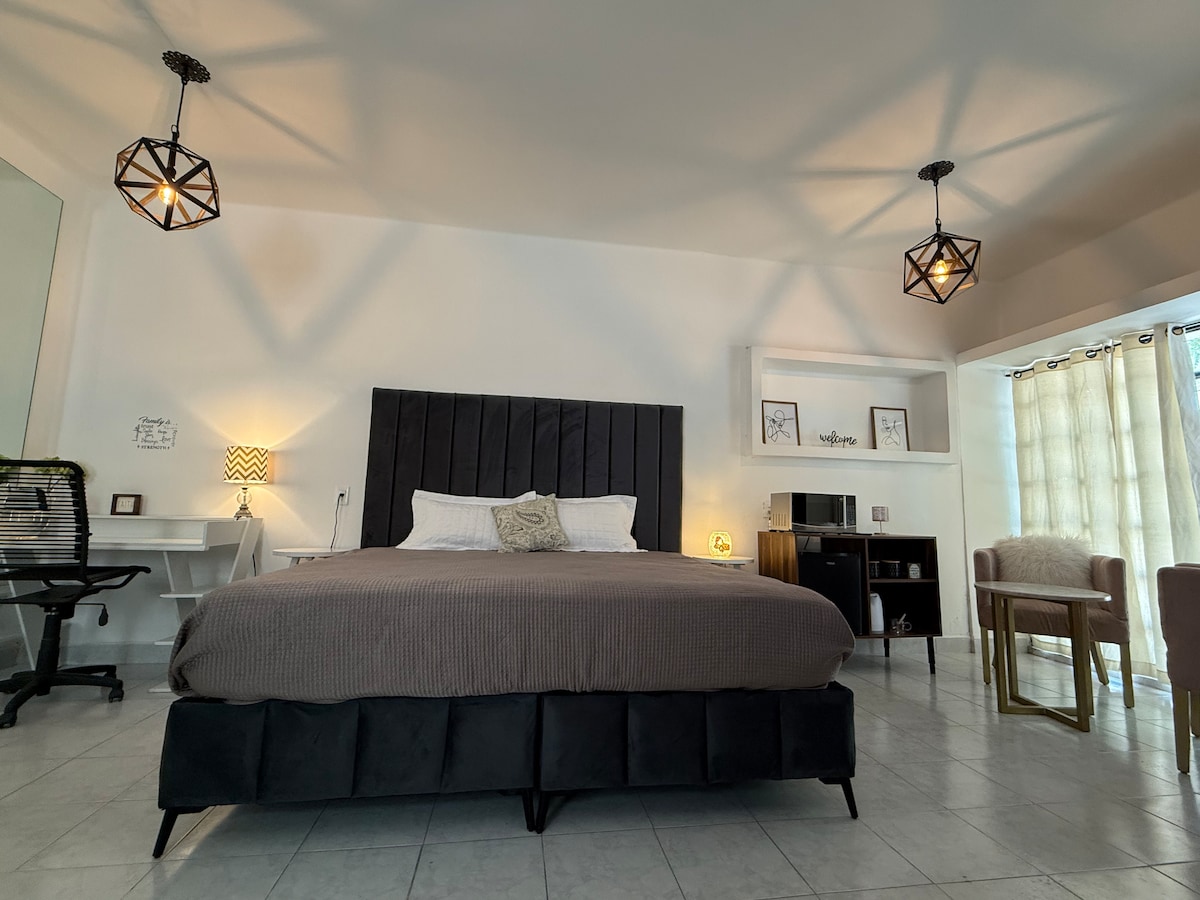 Relájate en este espacio tan tranquilo y elegante. En el downtown de la ciudad, cerca de bares, tiendas de conveniencia, supermercados, iglesias y restaurantes. Ideal si buscas pasar un rato de tranquilidad, relajarte y al mismo tiempo disfrutar la vida nocturna. La casa cuenta con 1 cama kingsize y 1 cama canguro tamaño matrimonial, cocina, 2 baños, Gym, patio grande, cochera y 2 estacionamientos más en la parte frontal de la casa. *NO APTO PARA NIÑOS PEQUEÑOS* *Alberca no disponible*