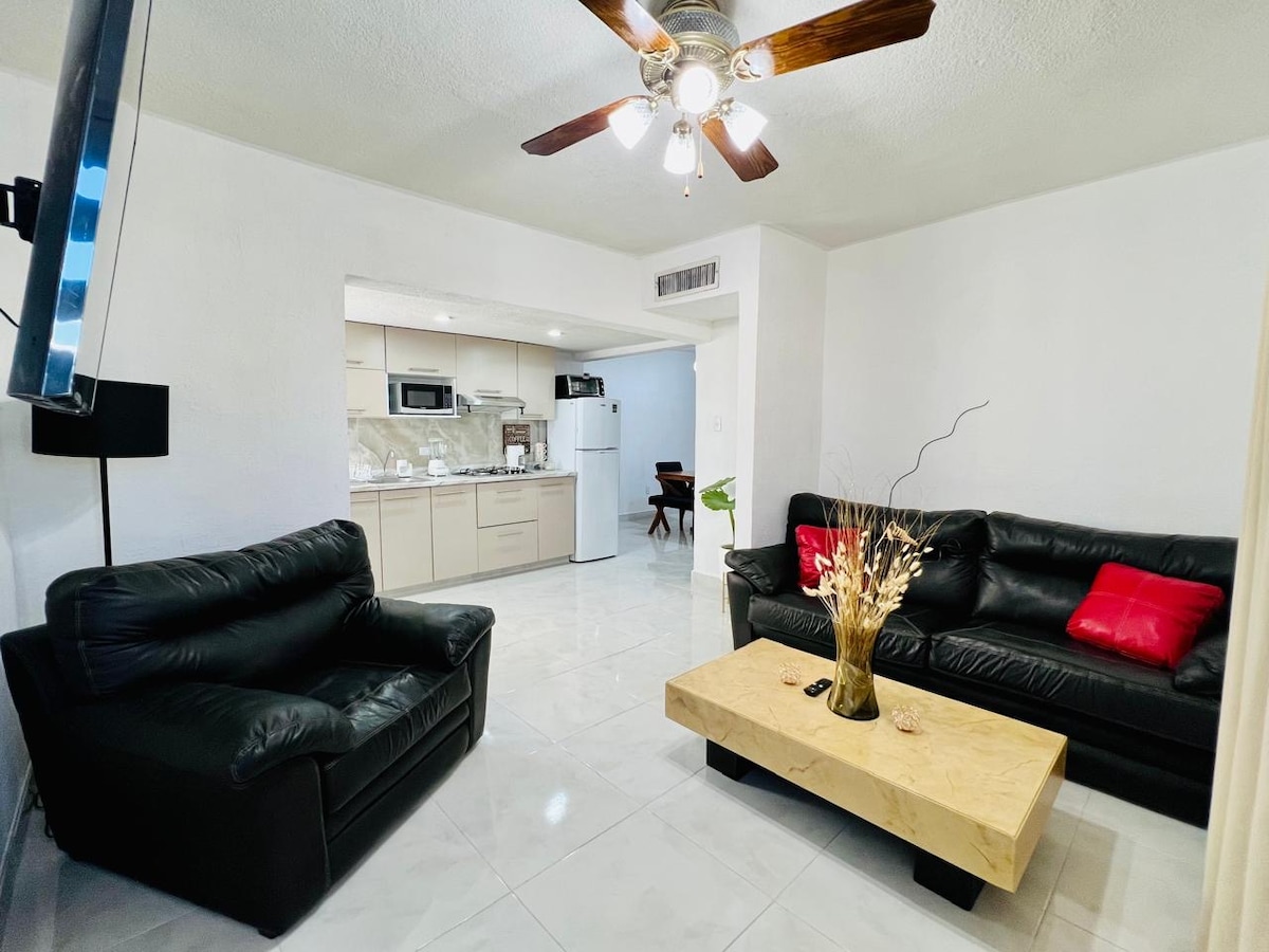 Amplio y cómodo departamento zona Residencial , segunda planta, para 6 personas, moderno con desniveles en su interior, cuenta con 3 habitaciones, 2 baños completos y 1 de tocador, cocina con todos los utencilios necesarios, sala, comedor, barra desayunadora, cuenta con clima frío y calor, cable, wifi, terraza con asador, camara de seguridad afuera, cochera para 1 carro, el alojamiento se encuentra en un lugar muy centrico, para estancias de mas de dos semanas se cobrará limpieza cada 7 dias.