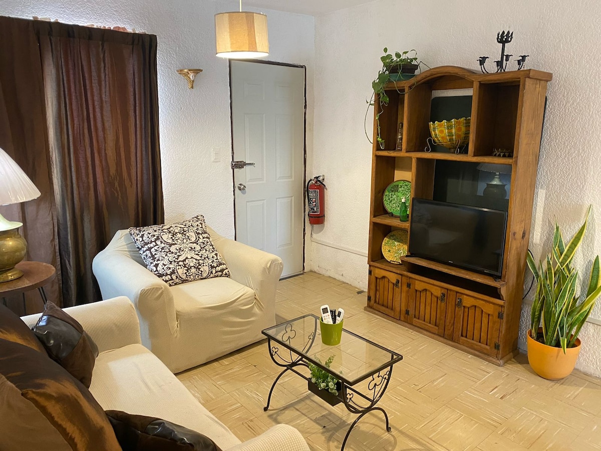 ⚠️ Nuestro Airbnb es un Departamento PRIVADO con UNA RECÁMARA con MiniSplit para UNA PAREJA cuenta con: -Cine en habitación y Alexa con Spotify Premium -TV 55' en sala con Chromecast y PS4 🎮 -🎬 Netflix, HBO, Disney+, ClaroVideo, por nuestra cuenta. -Estacionamiento un cajón exclusivo NO TECHADO 🏁 -NO FACTURAMOS -Aeropuerto a 5 min | Central de Autobuses a 5 min -Hospitales a 7 min -Plazas Comerciales, GYM y Restaurantes 🍴 a 3 min -Oxxo y Farmacia en esquina