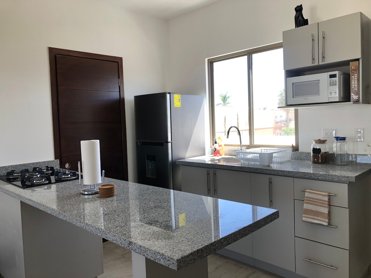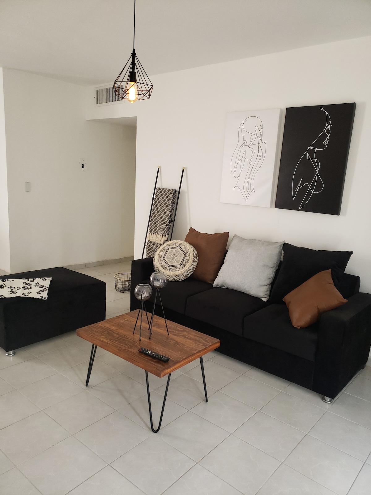 Elegante departamento de 2 recámaras en el cuarto piso con elevador, ubicado en exclusiva zona residencial. Cuenta con cocina equipada, sala y comedor amplios, estacionamiento gratuito y amenidades como alberca, gimnasio y salón de estar. A pasos de malls, bancos, restaurantes y tiendas. Con acceso rápido al aeropuerto por vía principal. Ideal para familias o viajes de negocios que buscan comodidad, ubicación y estilo.