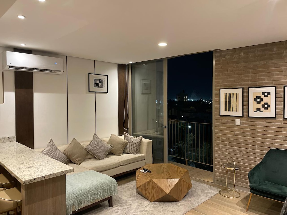 Ubicación A unas cuadras Hipermart y Plaza 4 caminos. Fácil acceso a transporte público. Cuenta con A. Acondicionado, cocinera, estufa, frigobar. Pequeño balcón. Smar tv. Wifi. A un costado de lavandería y planchado