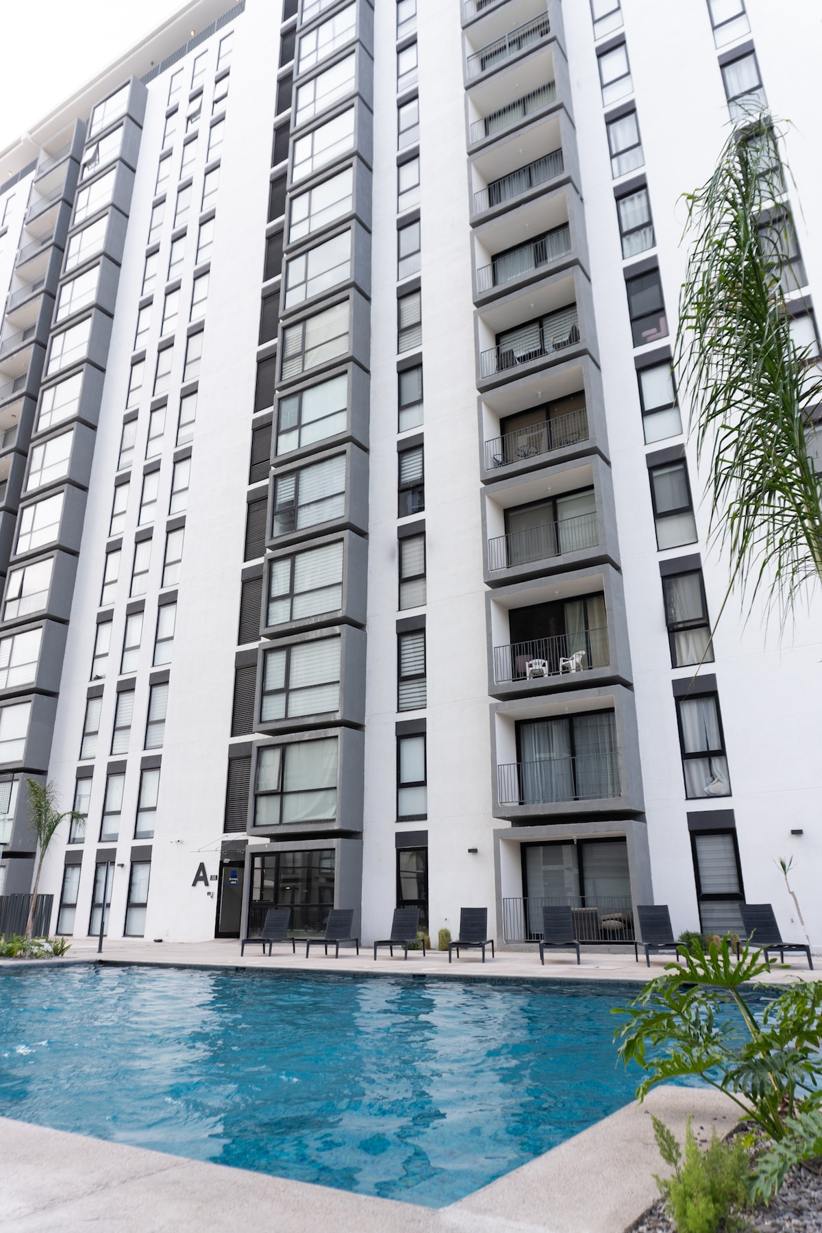 Departamento moderno de diseño industrial, completamente equipado, espacios amplios y cómodos. Cuenta con servicio de internet de fibra optica y Smart TV, ideal para viajeros de negocios y placer. Ubicado en una de las zonas residenciales más importantes y seguras de la ciudad. Rutas de fácil acceso para coches y transporte público. Cercano al Club de Golf Campestre, La clinica 71 de especialidades, restaurantes, bares, bancos, lavanderías, esteticas y plazas comerciales.