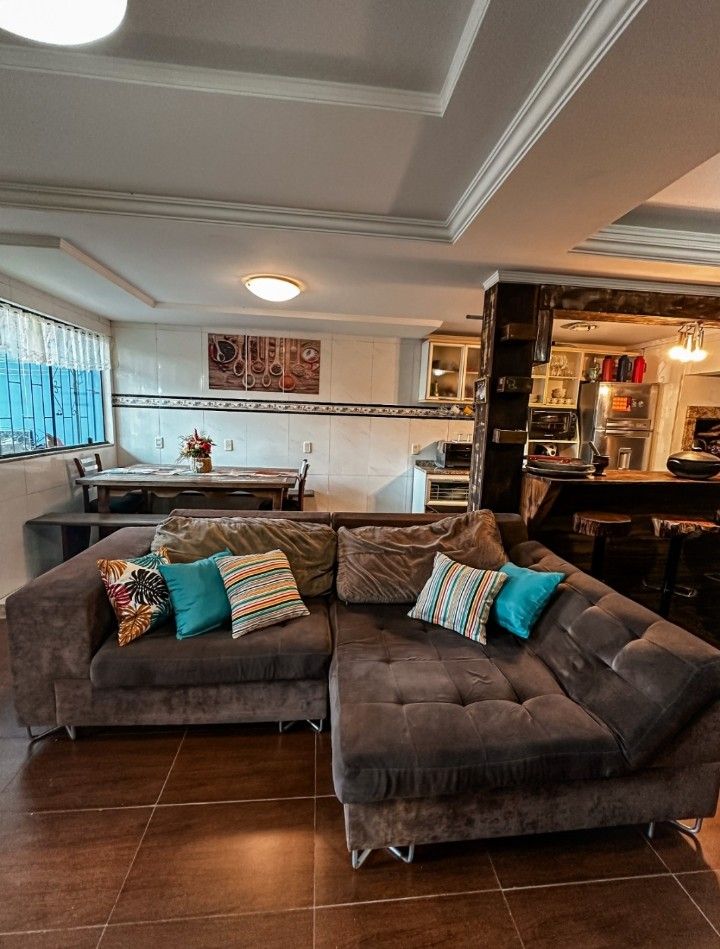 O quarto está equipado com ventilador, garantindo uma brisa refrescante. O banheiro oferece conveniência e privacidade. A sala possui uma TV, ideal para momentos de lazer. O frigobar está disponível para armazenar bebidas e lanches. Acomodação com cama de casal e beliche, proporcionando espaço para toda a família.