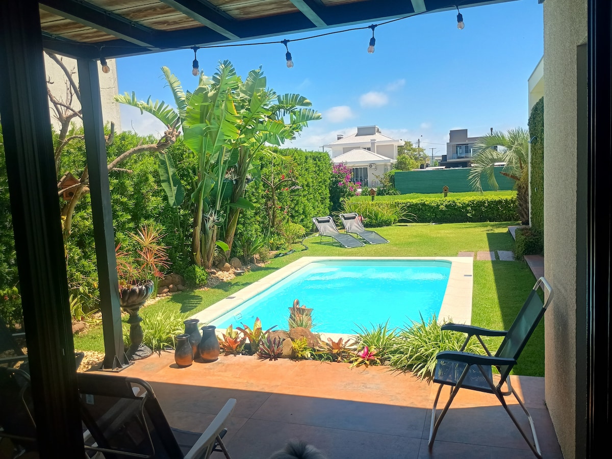 Se você está procurando uma casa a uma quadra da praia, com uma linda piscina, equipada com todos os utensílios domésticos, churrasqueira, garagem para até 6 carros, internet wifi, cômodos espaçosos, algumas quadras do supermercado, açougue, peixaria, frutaria, etc... Então essa é a casa perfeita para tu passares alguns dias ou semanas inesquecíveis. Caso você queira aproveitar o frio do nosso inverno a casa também conta com uma ótima lareira.